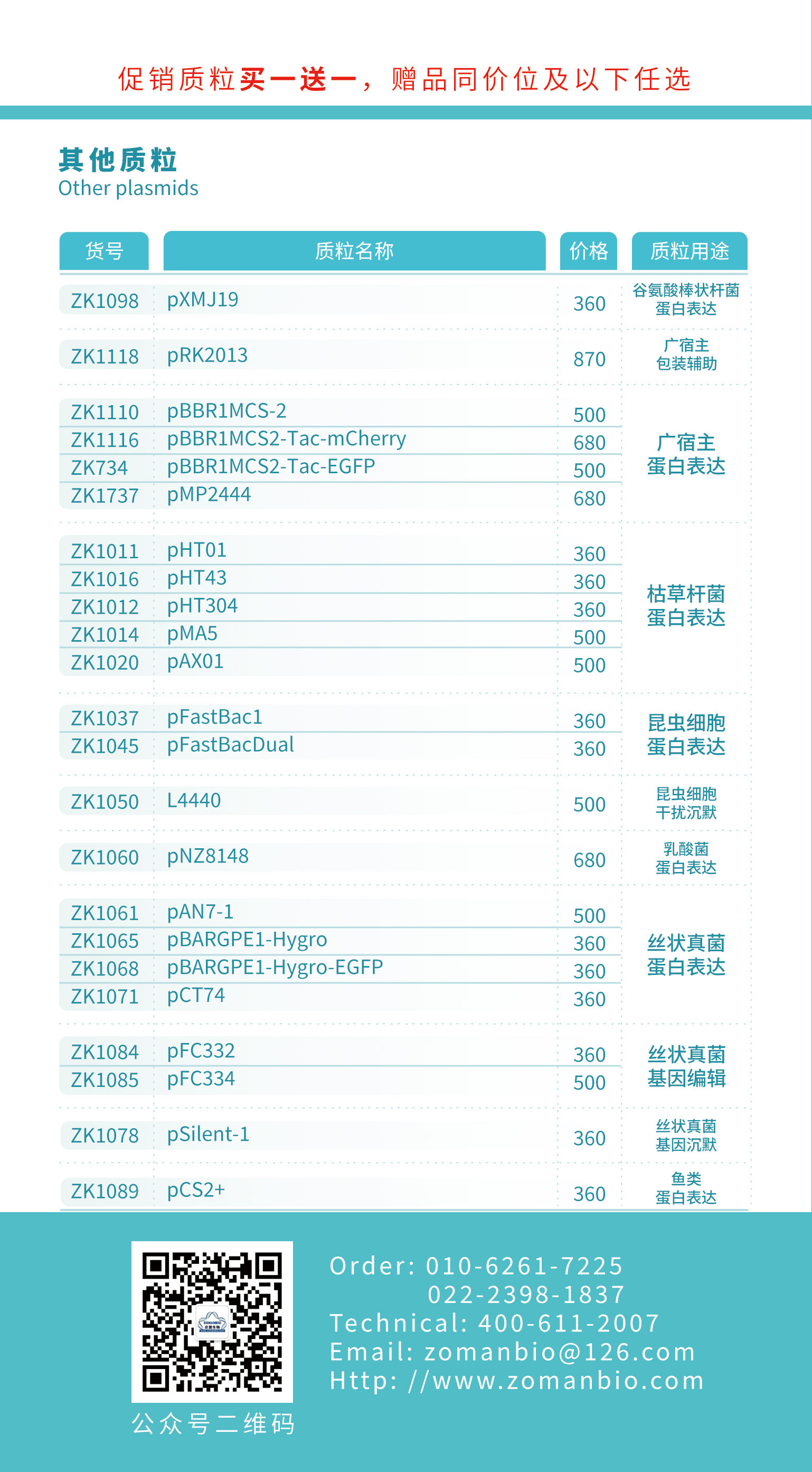 质粒促销重磅来袭!买一送一!