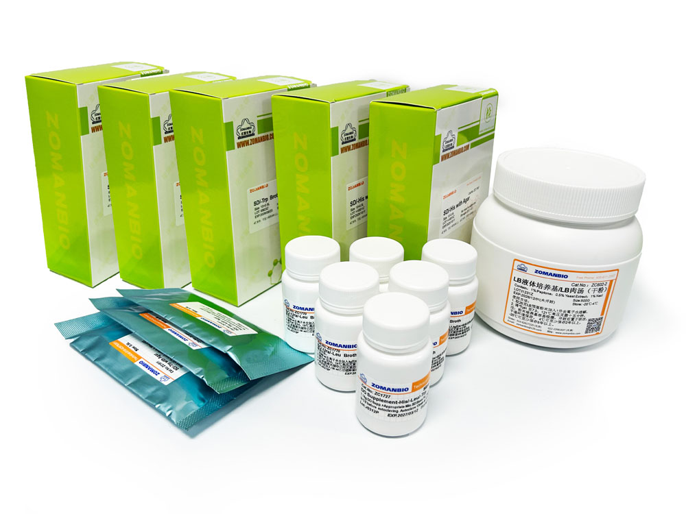 或者配置时自行添加Agar,务必选用优质Agar,添加量为20 g/L。冷却到50℃把培养基倒入平板中,室温使其凝固。封口膜封好后倒置保存在4℃冰箱。