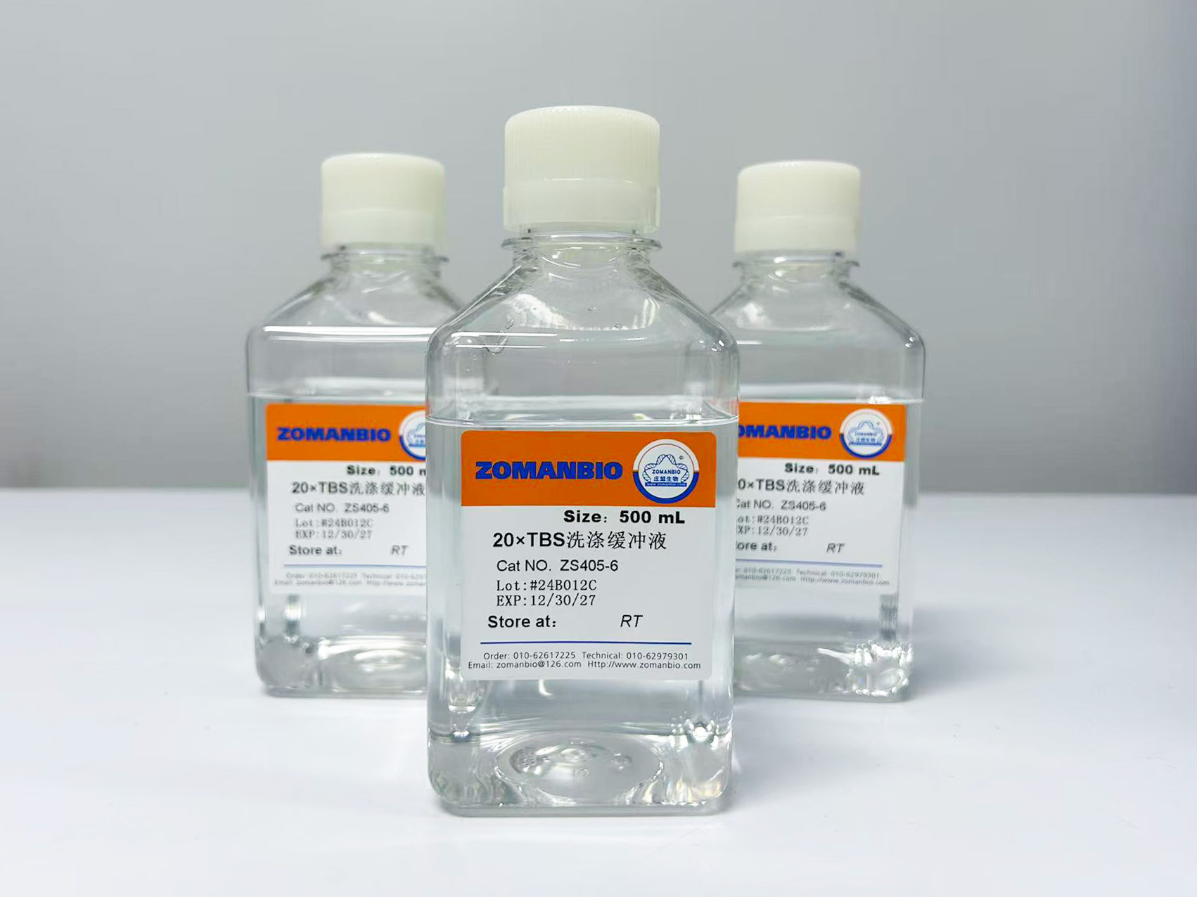 TBS缓冲液是生物学中常使用的等渗Tris 缓冲盐溶液,pH=7.6±0.1,主要用于免疫组化和原位杂交,酶联免疫等实验中,清洗免疫印迹实验中非特异性结合的抗体等。TBS由Tris-HCl构成稳定的pH缓冲体系,由NaCl提供等渗条件。