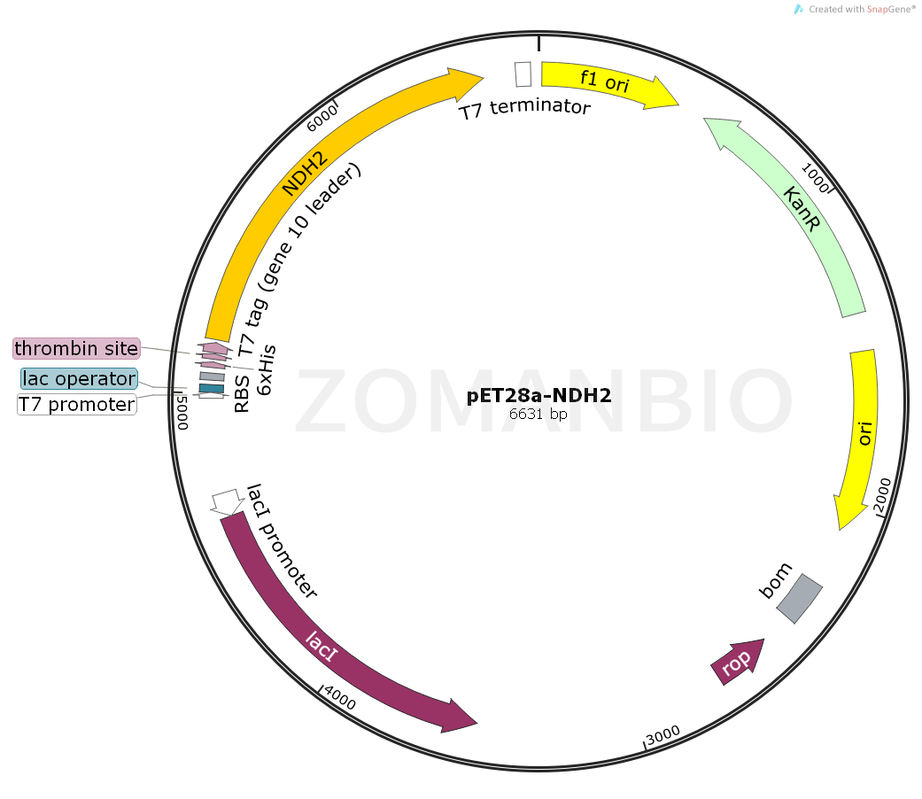质粒序列请下载:ZK2046 pET28a-NDH2质粒.txt