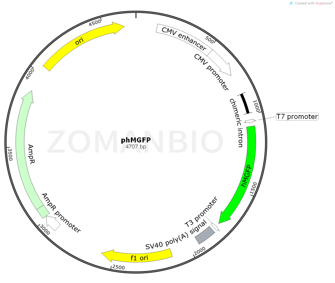 质粒序列请下载:ZK2048 phMGFP哺乳荧光质粒.txt