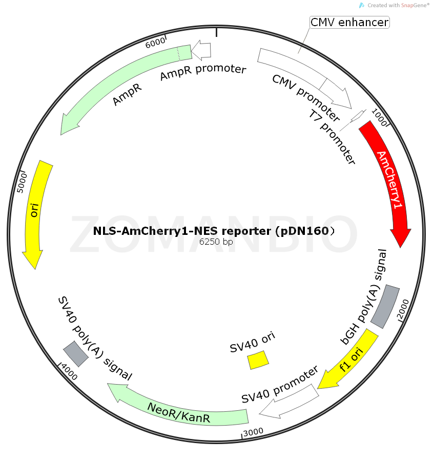 NLS-AmCherry1-NES reporter (pDN160)哺乳荧光质粒。