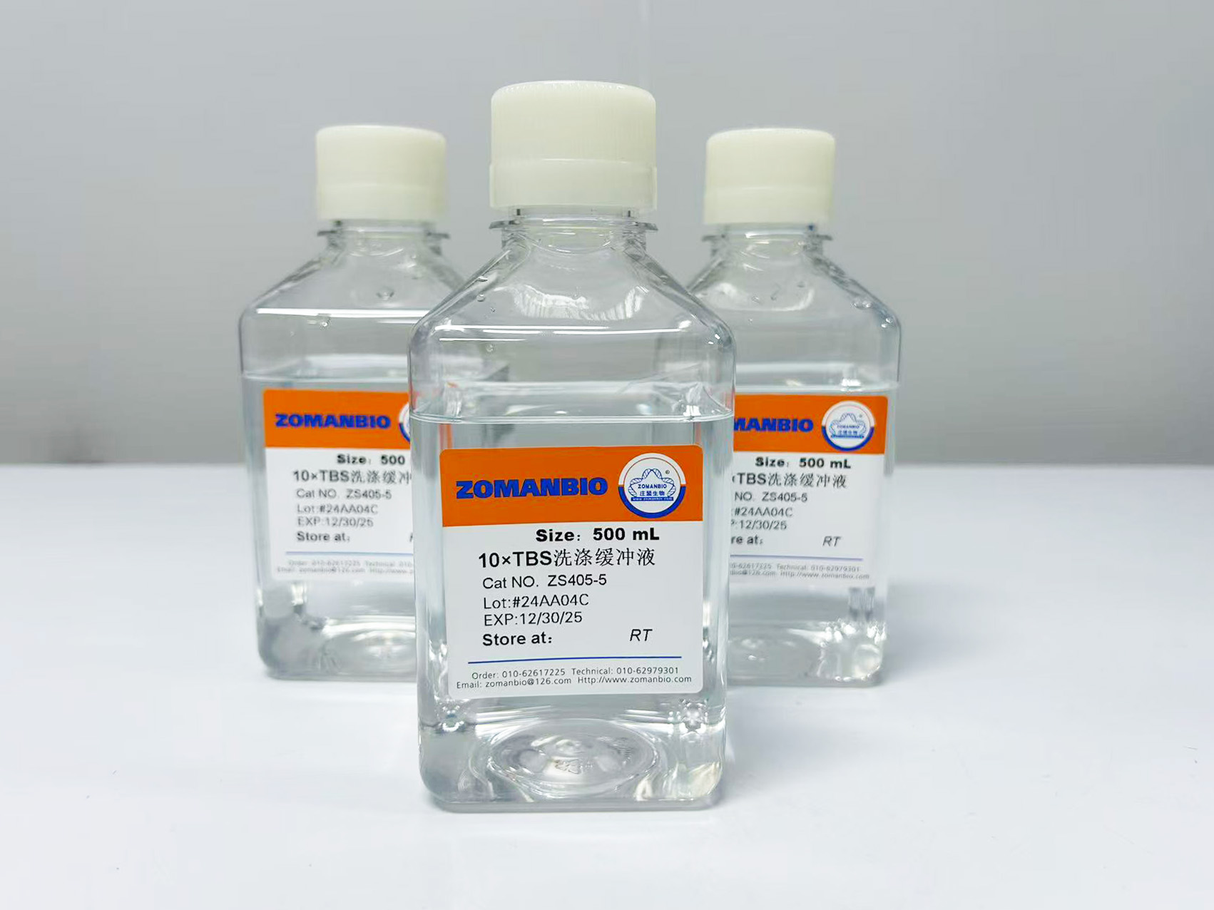TBS缓冲液是生物学中常使用的等渗Tris 缓冲盐溶液,pH=7.6±0.1,主要用于免疫组化和原位杂交,酶联免疫等实验中,清洗免疫印迹实验中非特异性结合的抗体等。TBS由Tris-HCl构成稳定的pH缓冲体系,由NaCl提供等渗条件。